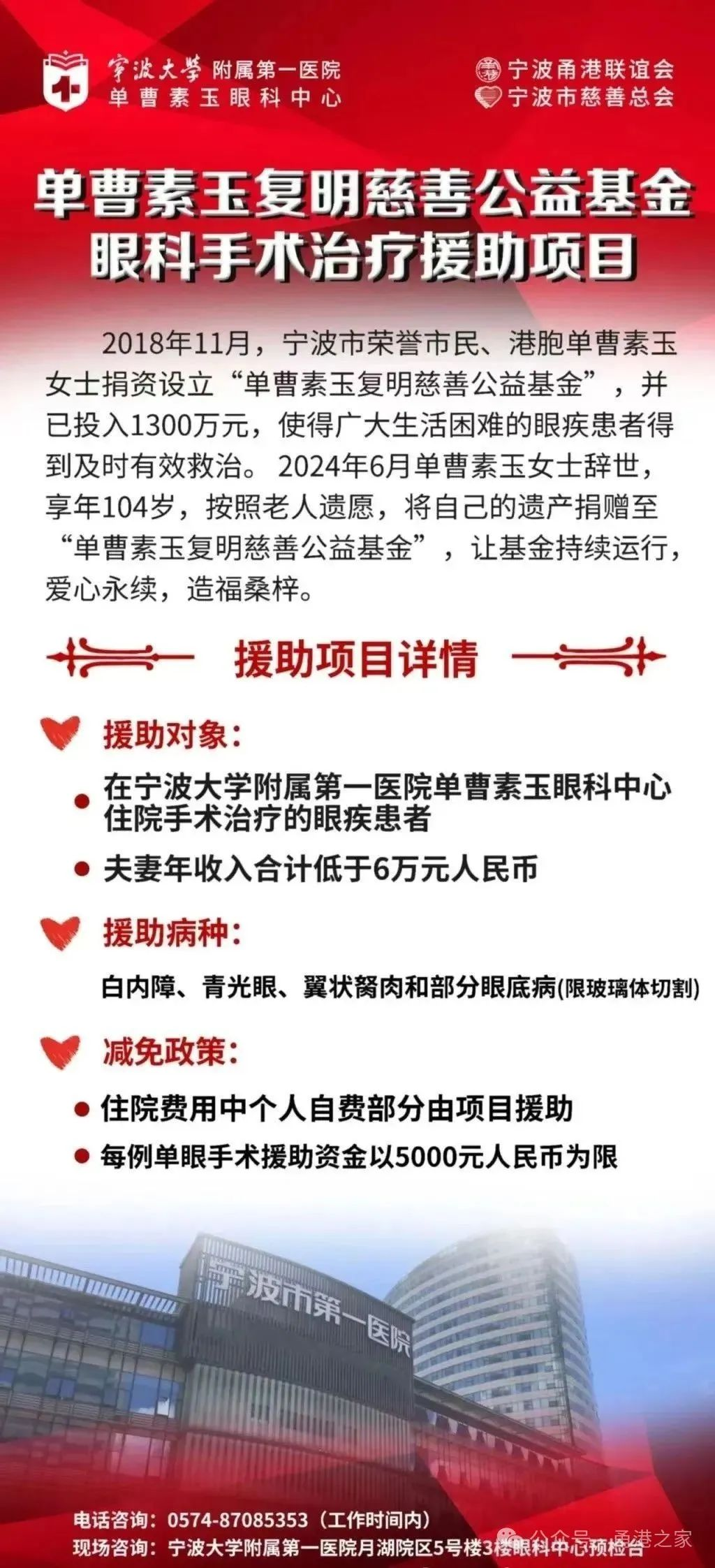未来,宁波甬港联谊会也将携手宁波市第一医院,继续爱心接力,联动社会各界力量,开展更多义诊活动,帮助更多需要帮助的人。让每一双眼睛都能重见光明,让每一份爱心都能得到传递。感谢单曹素玉女士的无私奉献,也感谢每一位关心和支持眼健康事业的朋友。