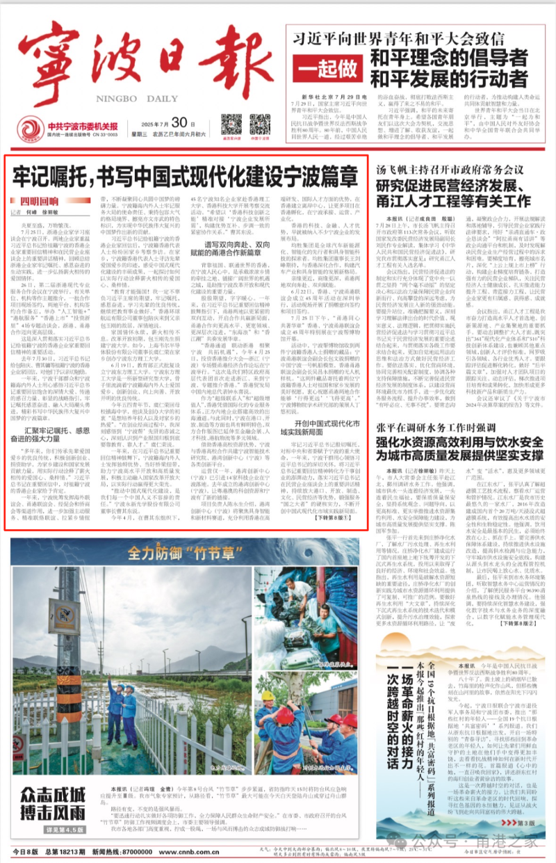 “多年来,你们传承先辈爱国爱乡的优良传统,积极创新创业、捐资助学,为家乡建设和国家发展贡献力量,用实际行动诠释了薪火相传的爱国心、桑梓情。”习近平总书记在重要回信中,对祖籍宁波的香港企业家给予肯定。